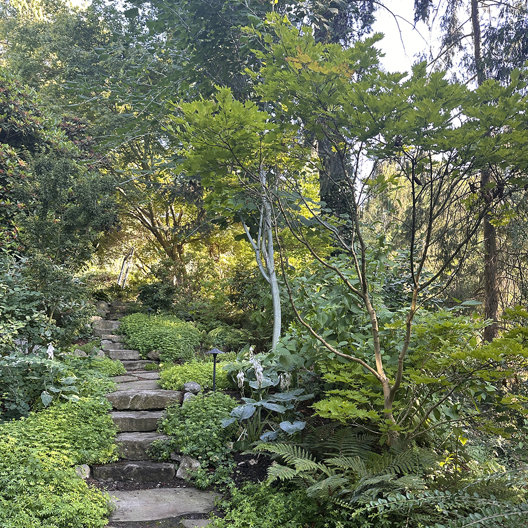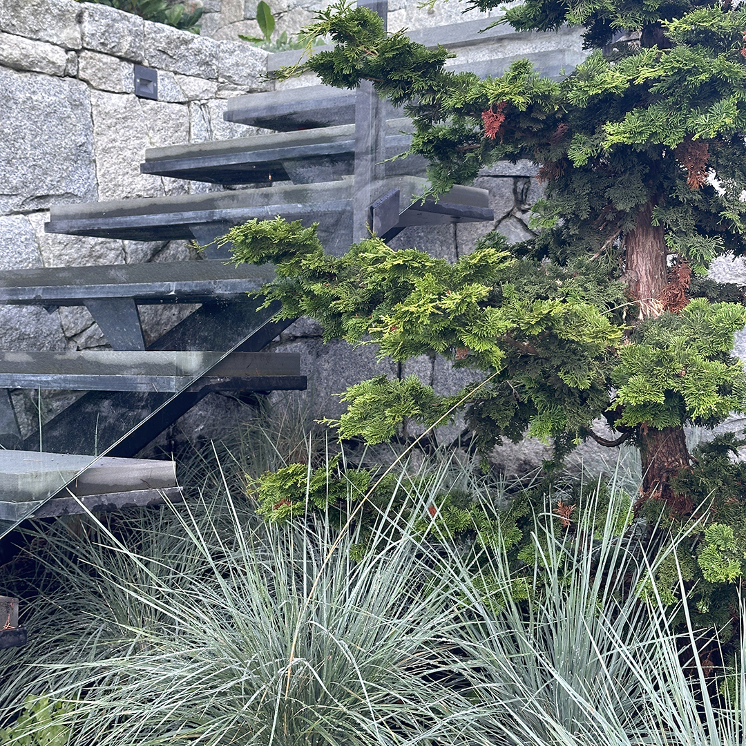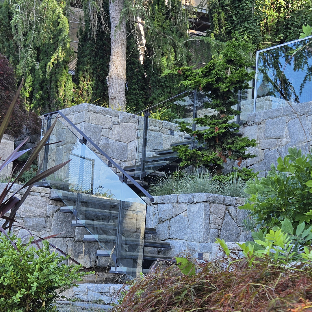 This landscape and garden renovation was designed to complement and extend the architectural character of the Hollingsworth-designed home in West Vancouver, seamlessly blending interior spaces with the outdoors. The project was driven by the need to address site construction along the west side of the property, where a new boundary was defined through terraced planting beds, retaining walls, and a gently stepping staircase that negotiates the varying elevations.