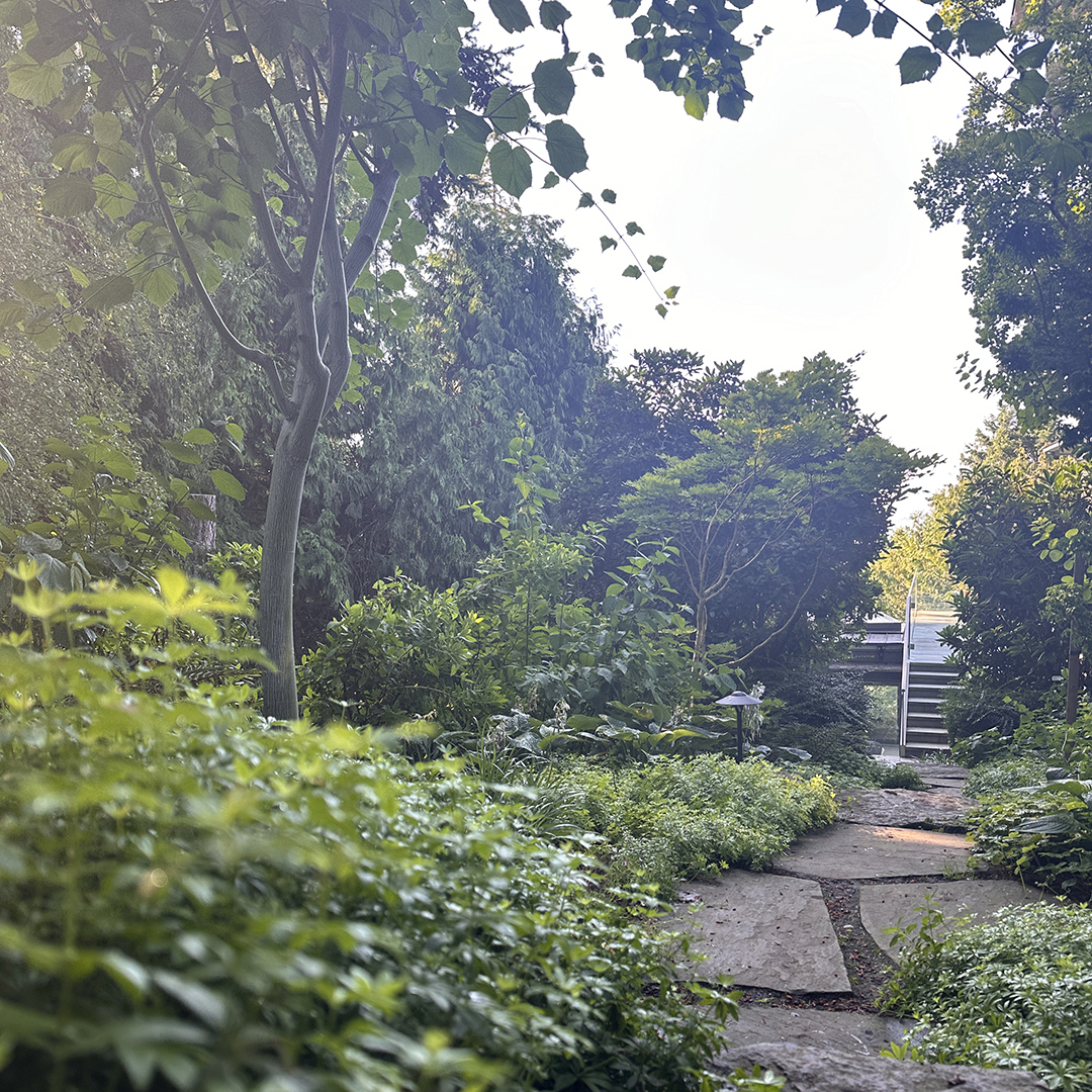 On the east side, the restoration of the forested landscape creates a lush, natural backdrop that enriches views from the home, introduces depth and texture, and strengthens the connection between the built environment and its surroundings. With every aspect carefully considered, the result is a refreshed, harmonious landscape that feels as though it has always belonged in this lush, full setting.